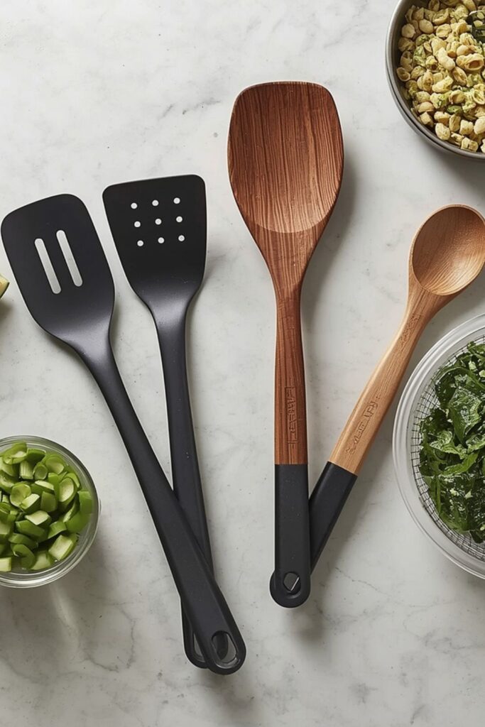 Cooking utensils such as spatulas, ladles, tongs, and serving spoons are used every day. These tools handle stirring, flipping, serving, and transferring food safely. Choosing utensils that are heat-resistant and easy to grip improves comfort.