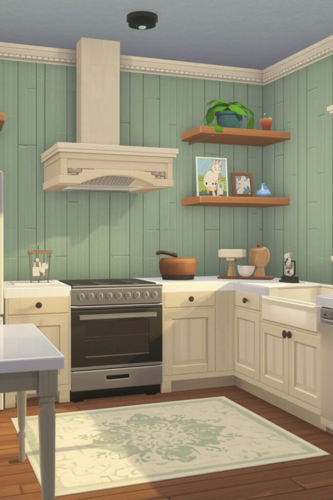 To recreate this look, focus on symmetry and visual harmony. Keep counters neat, use decorative plants sparingly, and choose matching appliances. Pinterest-style kitchens photograph beautifully and are ideal for players who enjoy sharing their builds online.