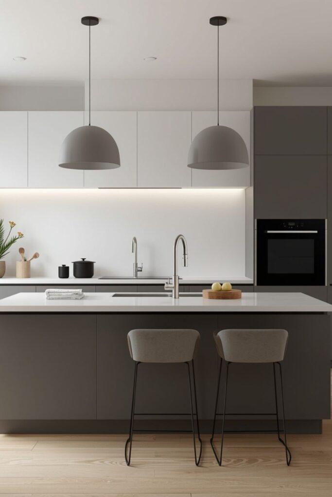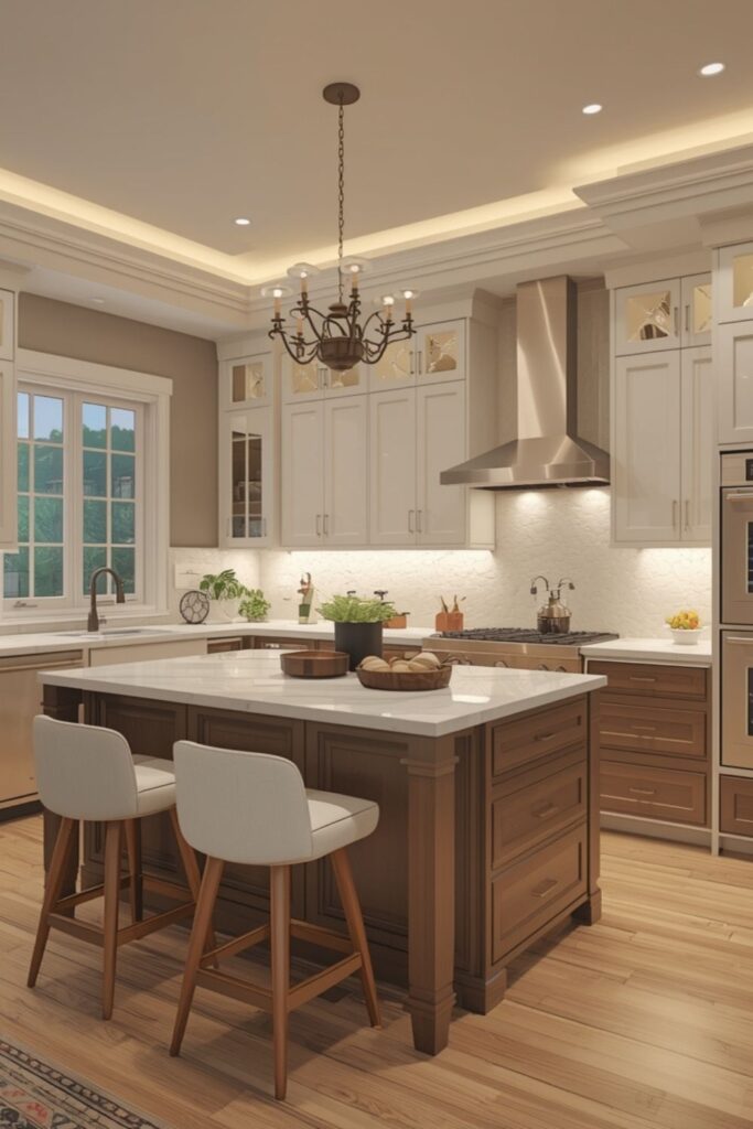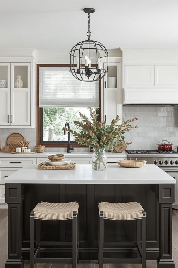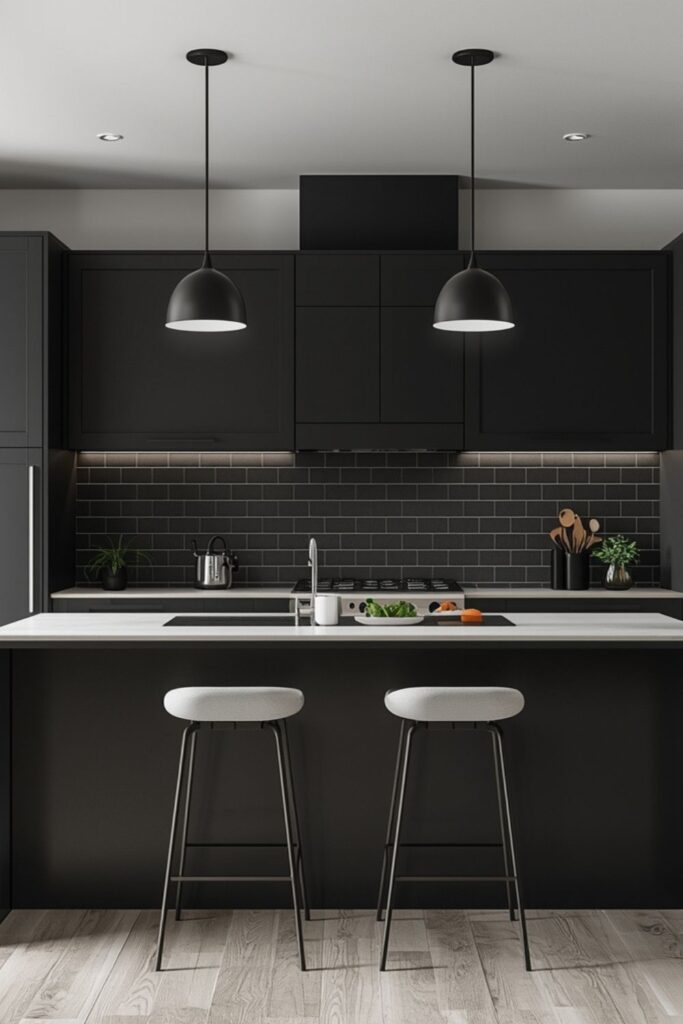 Good lighting is essential here. Use ceiling lights, under-cabinet lighting, or pendant lights to balance the darker colors. Mixing dark cabinets with lighter countertops can also prevent the kitchen from feeling too closed in.