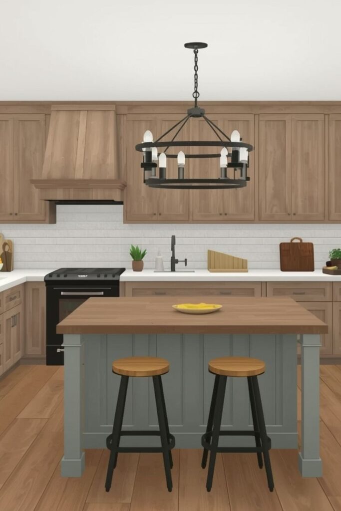 Pair wood textures with neutral or matte finishes to avoid making the space feel outdated. Even small wooden details, like shelves or trim, can make a big difference. This style blends well with farmhouse, modern rustic, or family-oriented builds.