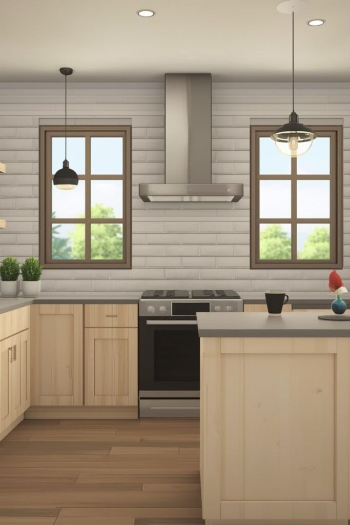 This style works well with neutral colors and simple cabinet designs. Adding a dining nook or breakfast area nearby enhances the family atmosphere. It’s ideal for suburban houses and long-term roleplay builds.