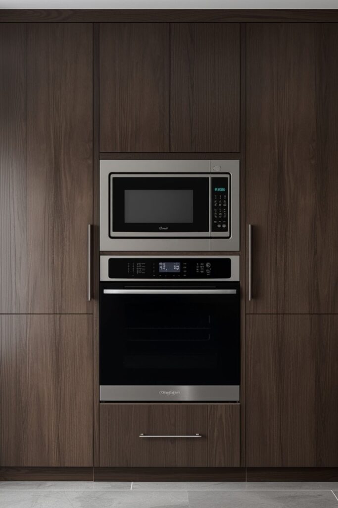Large appliances such as microwaves or ovens can visually dominate small kitchens. Concealing them behind cabinet panels helps maintain a uniform appearance. Built-in solutions allow appliances to disappear into the design rather than stand out.