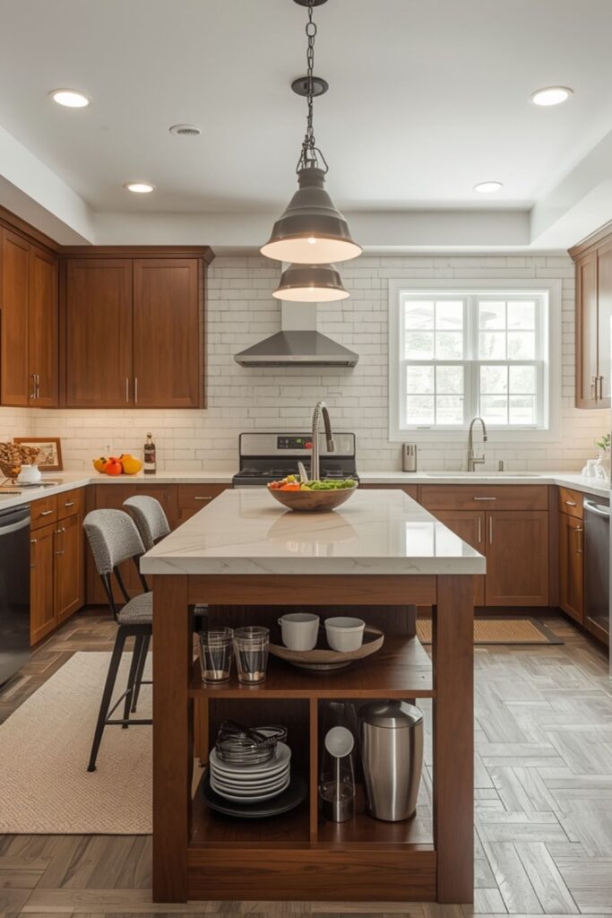 A well-sized range hood or integrated ventilation system improves air quality and protects cabinetry and walls. In open kitchens, proper ventilation becomes even more important, as cooking smells travel easily.