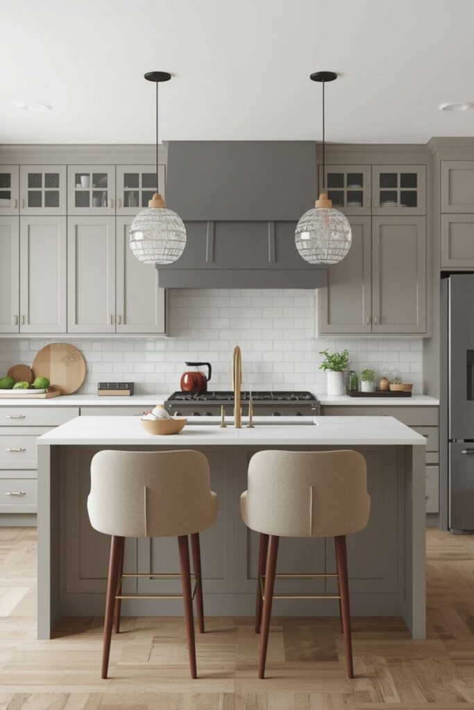 Color choices strongly influence how buyers perceive space. Neutral tones like whites, greys, soft beiges, and muted earth colors make kitchens feel larger and brighter.