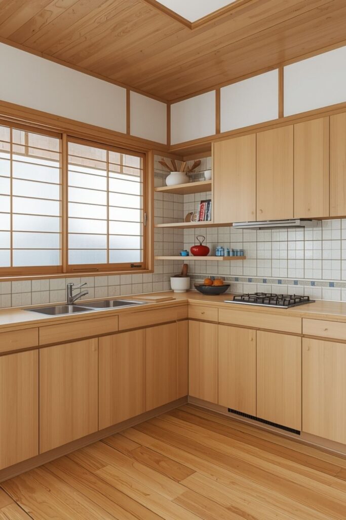 Blending 10 Minimal Japanese-Inspired Modern Kitchen design principles with modern functionality—often called Japandi style—these layouts work especially well for small homes, apartments, and compact urban kitchens in T1 countries. Clean zoning, efficient movement, and visual calm define every decision.