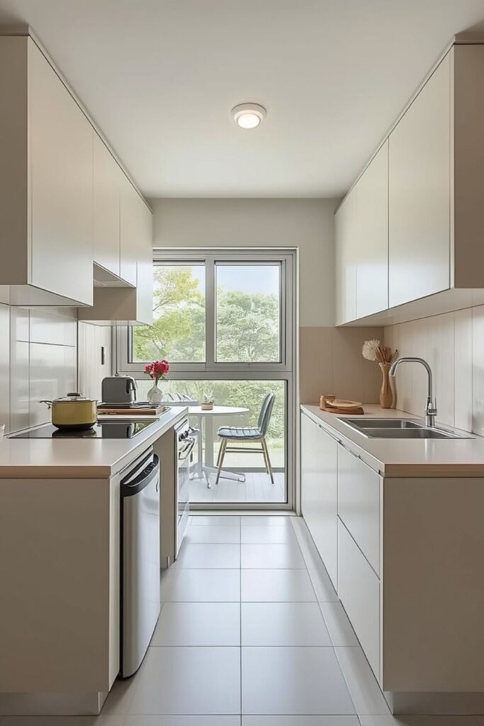 2. Slim I-Shaped Kitchen Layout for Narrow Homes