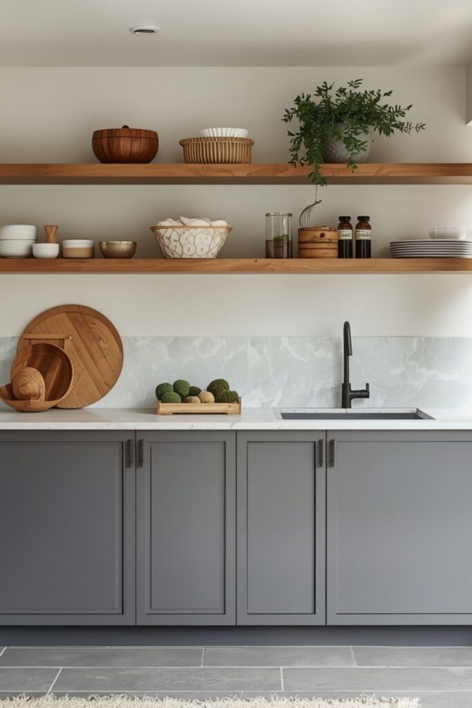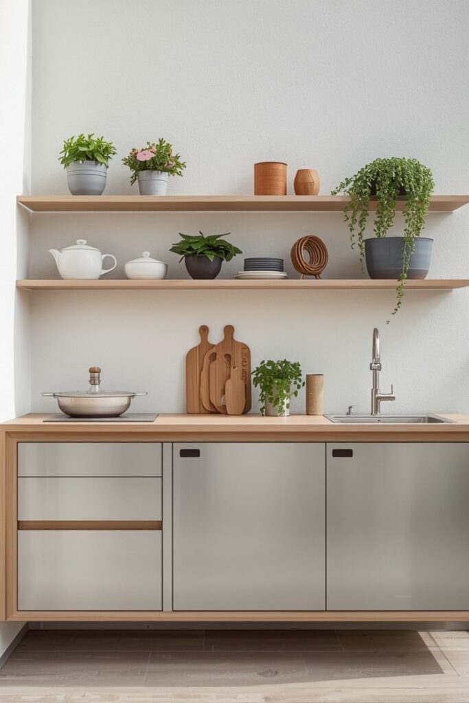 This approach supports minimalism by limiting storage to essentials, keeping the kitchen visually calm and functional.