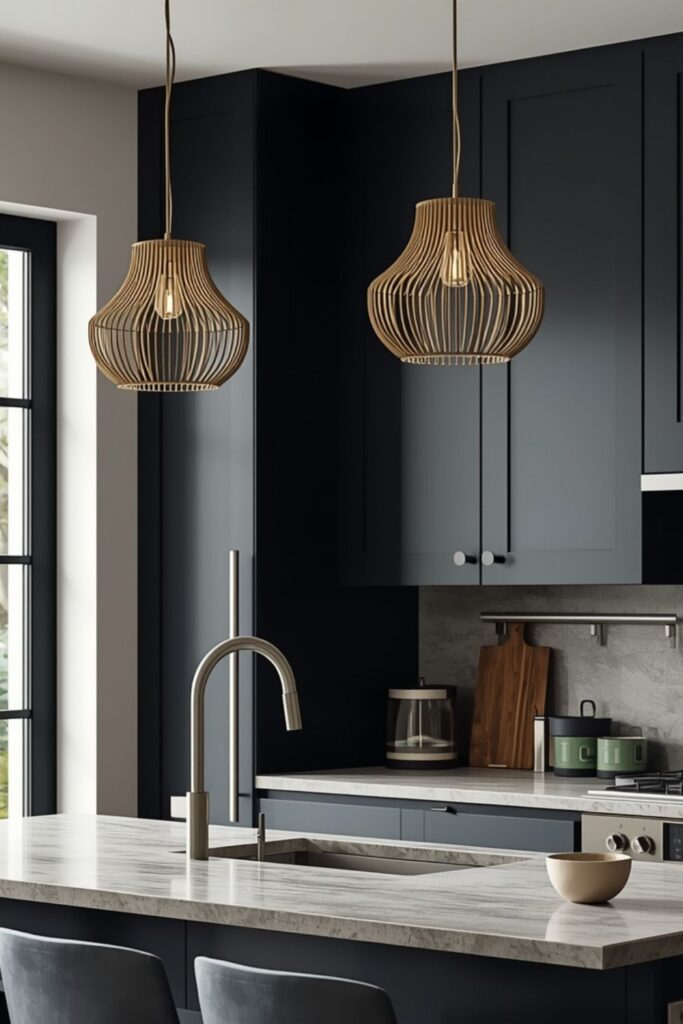 A sculptural chandelier can act as the artistic centrepiece of a kitchen while still feeling elegant. The key is choosing designs with restrained forms—think asymmetrical metal branches, soft curves, or minimalist geometric shapes. These chandeliers add personality without overwhelming the space.