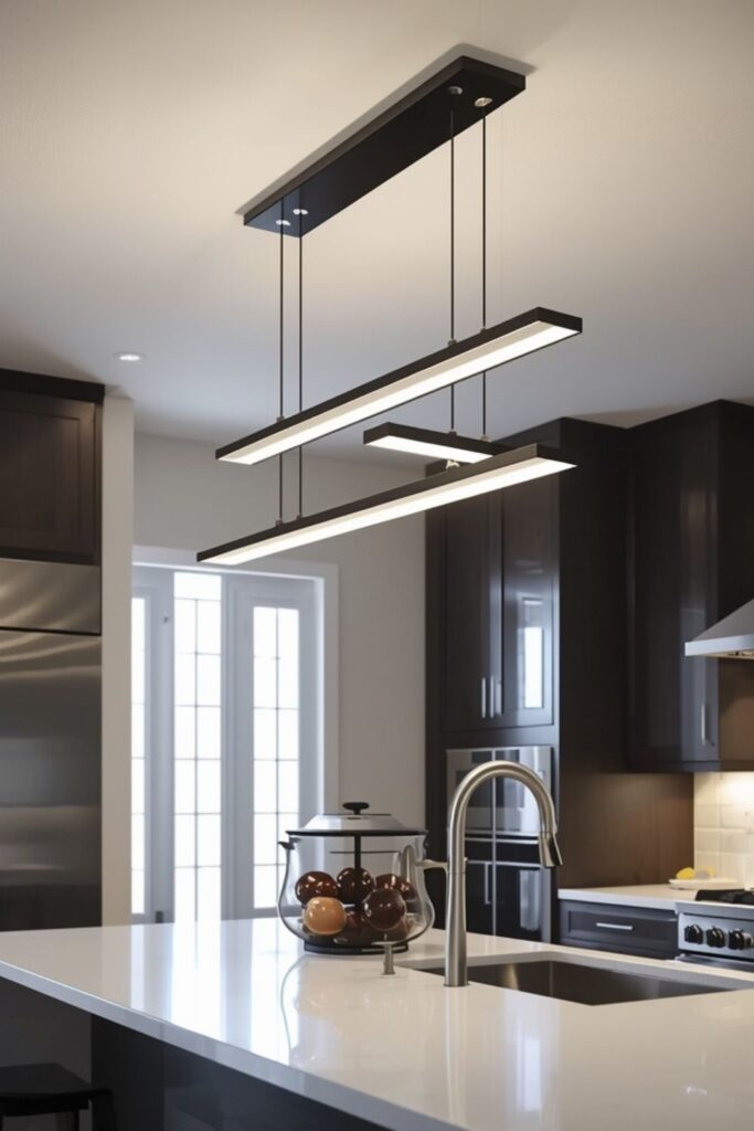 1. Minimal Linear Chandeliers for Kitchen Islands