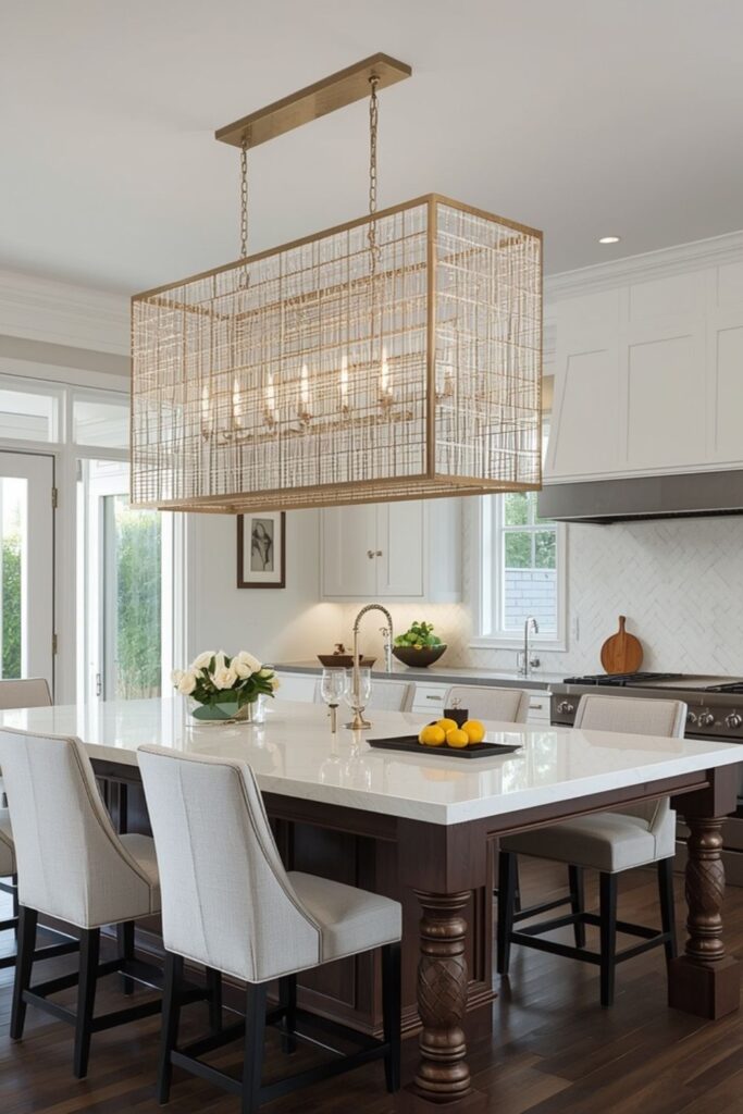 In open kitchens, this lighting approach helps visually separate cooking and dining zones. Choosing chandeliers that echo other kitchen finishes ensures cohesion across the space, making the kitchen feel thoughtfully curated rather than visually busy.