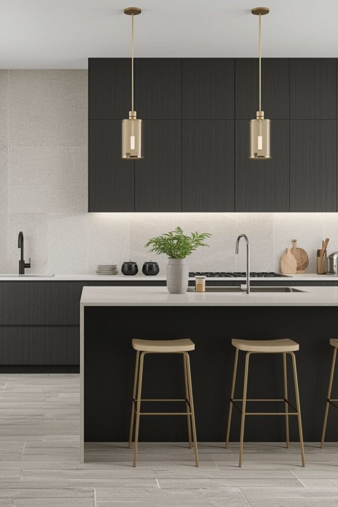 Whether ceramic or engineered stone, slab-style tiles reduce breaks in the design and allow the kitchen to feel composed and intentional.