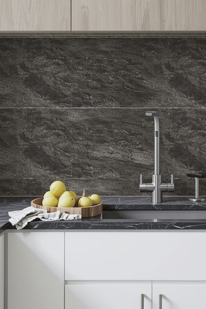 In homes exploring modern kitchen backsplash tiles ideas, stone-inspired tiles often connect the kitchen visually with the rest of the home, especially when floor tiles for clean minimal interiors use similar tones.