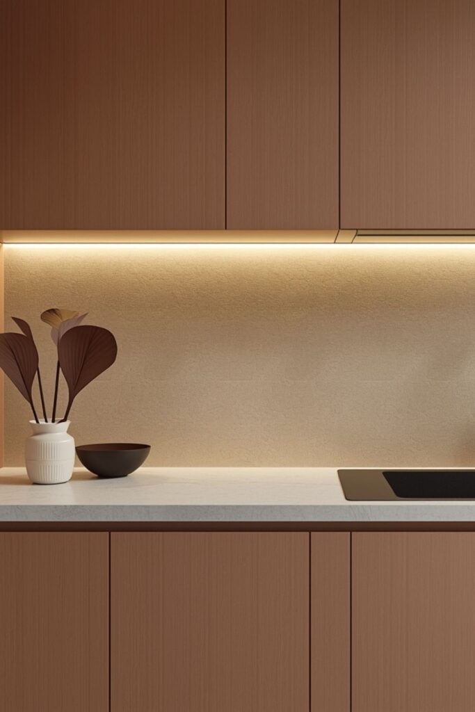 These modern kitchen backsplash tiles for clean minimal interiors help maintain visual stability throughout the day, especially under artificial lighting. Maintenance also becomes easier, as fingerprints and smudges are less visible.