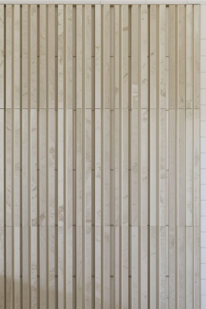 Stone-look tiles introduce natural depth without overwhelming the space. They provide gentle variation while maintaining a neutral palette.