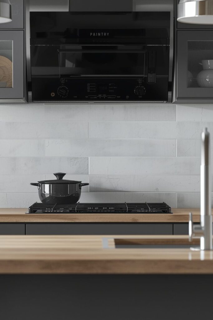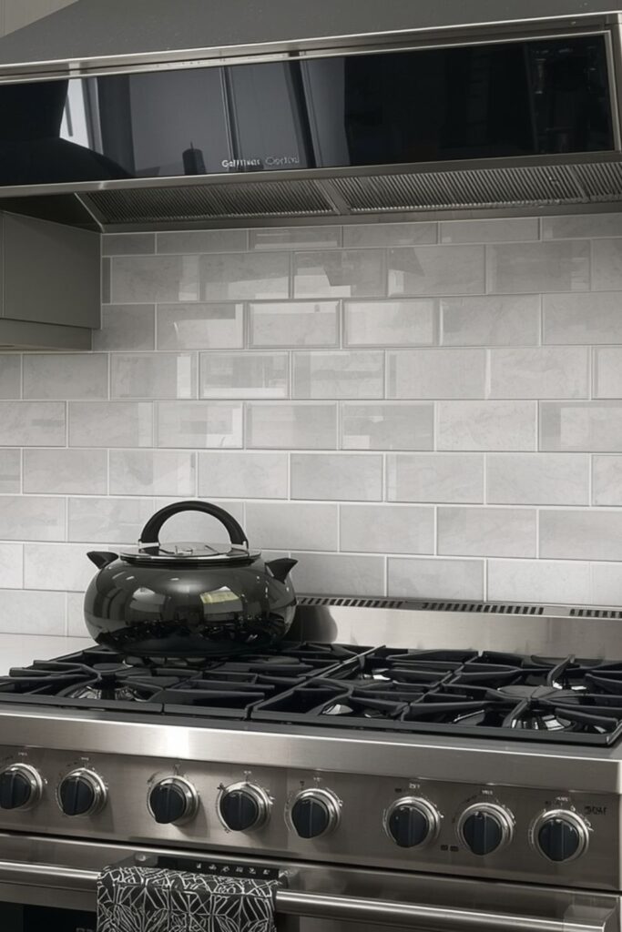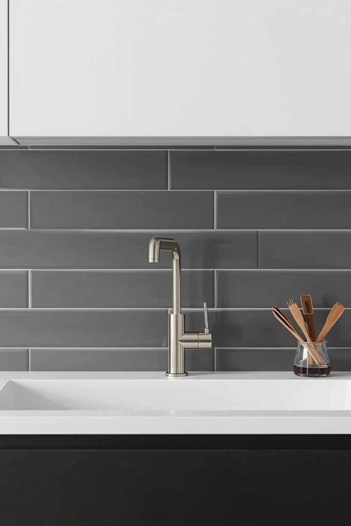 Light grey backsplash tiles strike a balance between white and darker tones. They hide everyday splashes better while maintaining a fresh appearance.