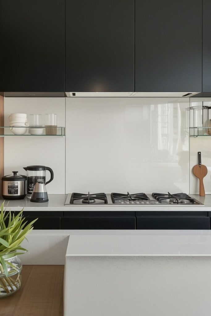 This approach works especially well behind cooktops, where ease of cleaning matters as much as visual simplicity.