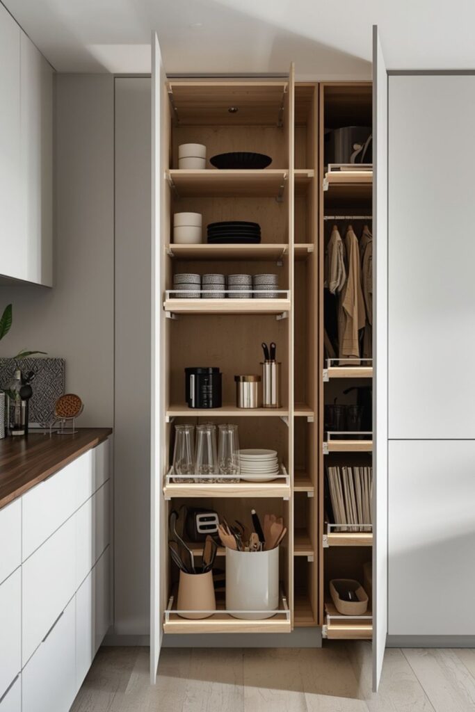 Rather than increasing cabinet count, modern kitchen design focuses on smarter internal organization that supports daily routines effortlessly.