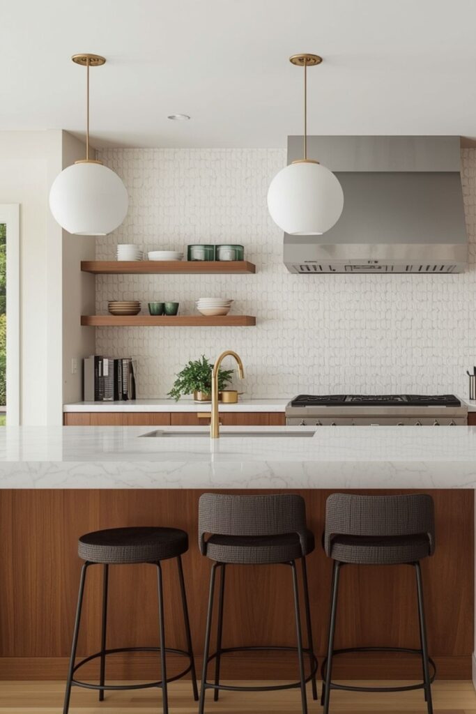 Modern kitchen design ideas increasingly focus on layered color rather than single-tone schemes. Even small adjustments, such as warm-toned backsplashes or cabinetry accents, can shift the entire mood. These subtle palettes photograph beautifully, which is why modern kitchen design Pinterest searches frequently highlight kitchens that feel calm rather than dramatic.