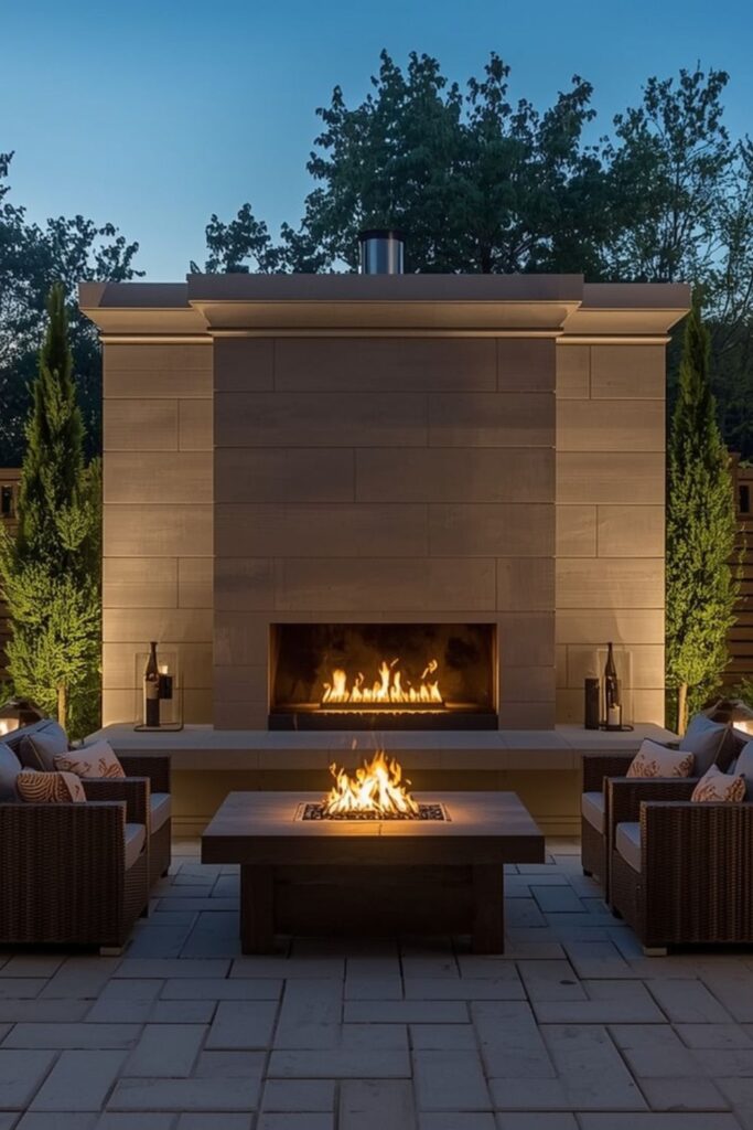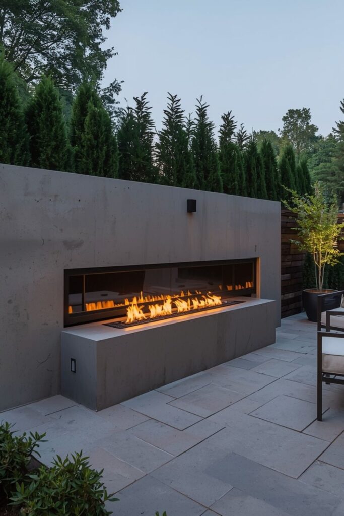 Among trending Modern outdoor fireplace ideas, linear designs stand out because they are easy to operate and require less cleanup. Gas models eliminate ash and smoke issues, making them practical for smaller patios. They also provide consistent heat and controlled flames.
