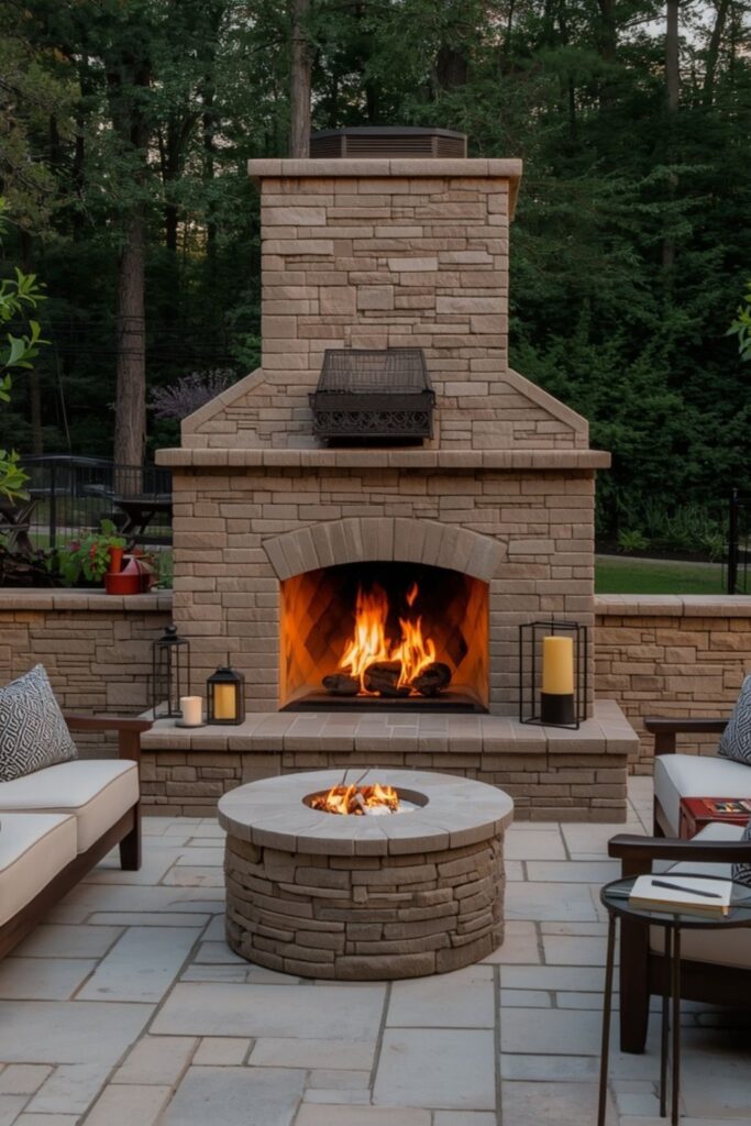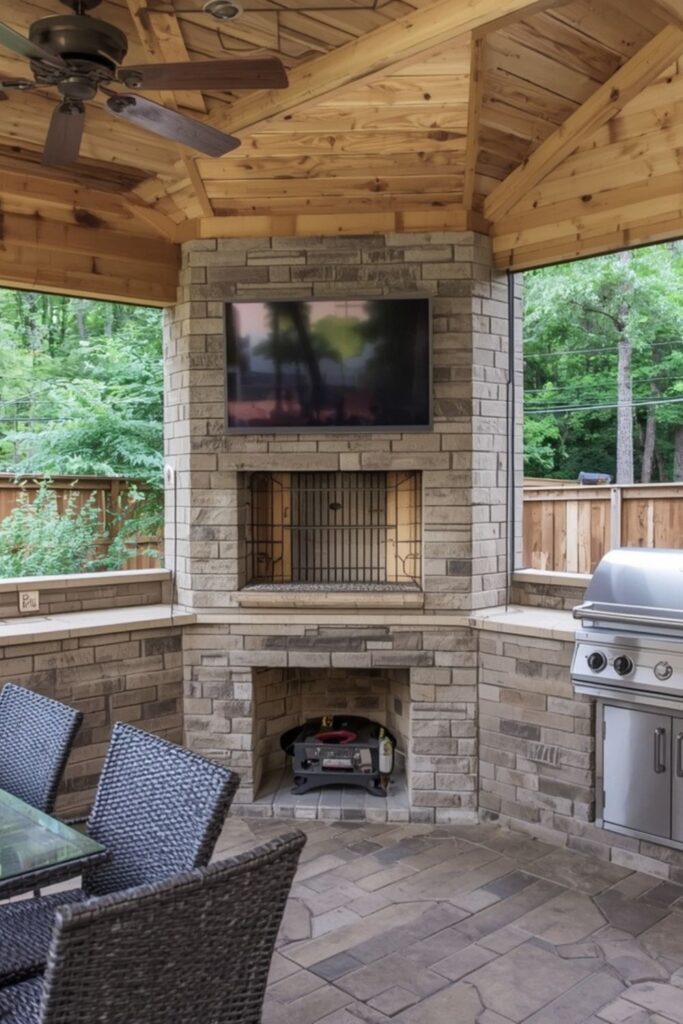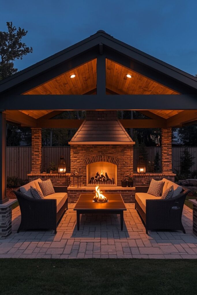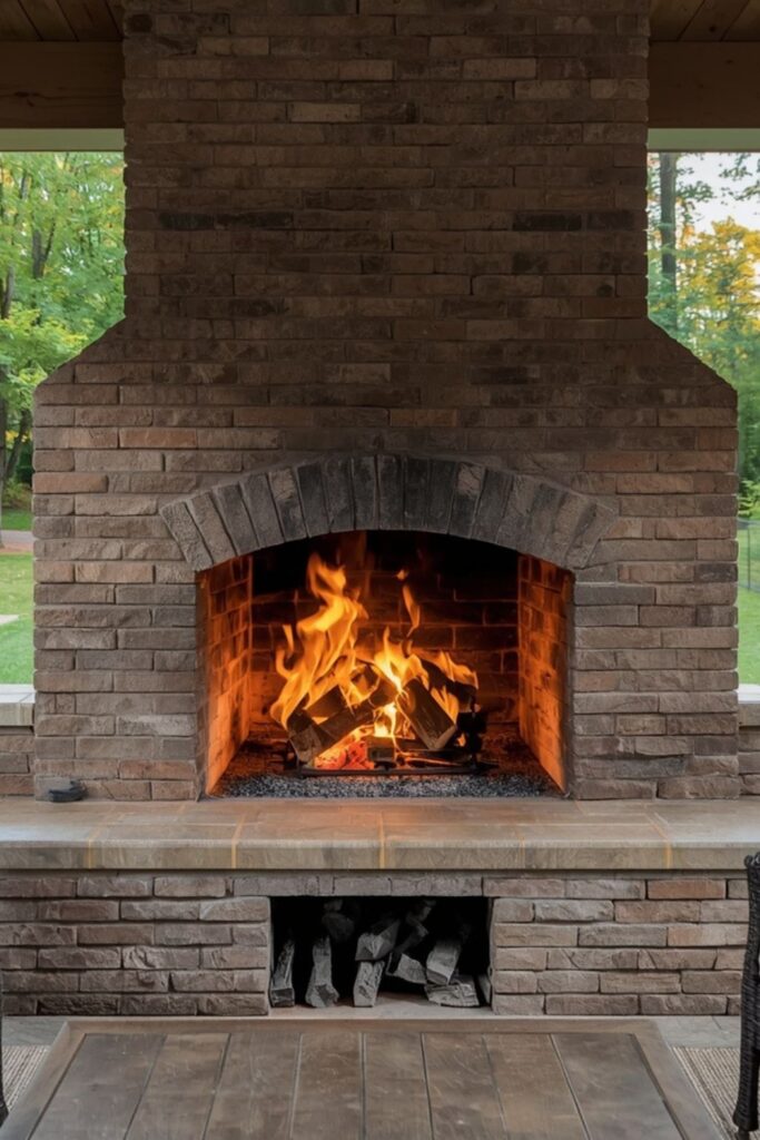 Many homeowners prefer Covered outdoor fireplace ideas because they extend outdoor living year-round. A covered setup creates a more intimate and structured atmosphere. With proper ventilation and lighting, it becomes a perfect evening retreat.
