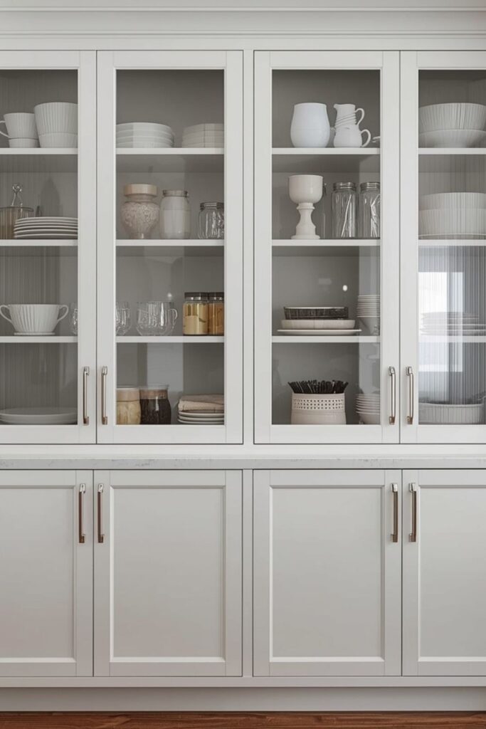 9. Glass-Front Pantry Cabinets for Soft Visibility