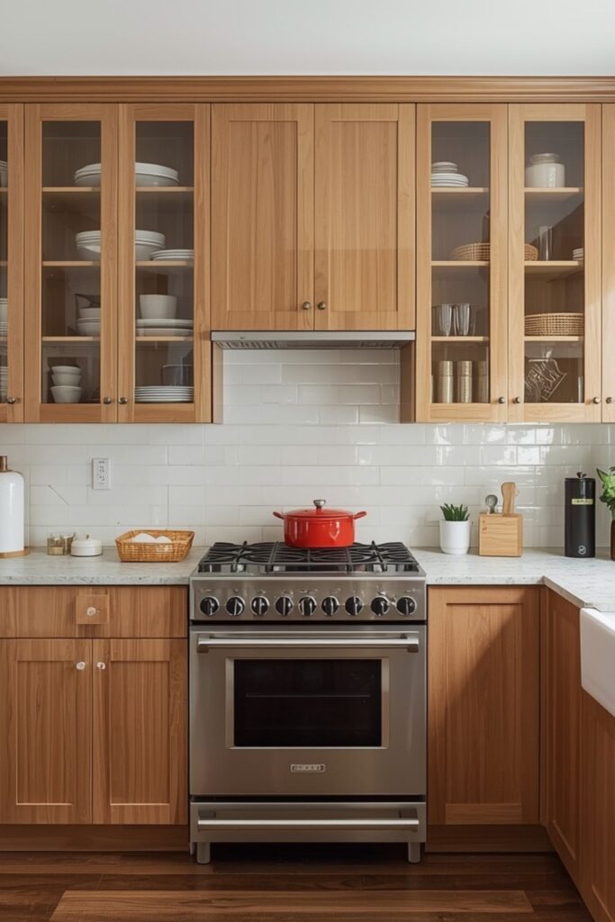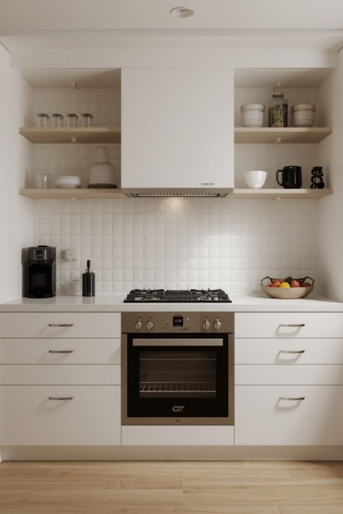 A smarter approach is to mix closed cabinets with open shelving or glass-front units. This creates breathing room while still offering storage. Modern small kitchen trends favor fewer, well-planned cabinets rather than squeezing storage into every possible corner.