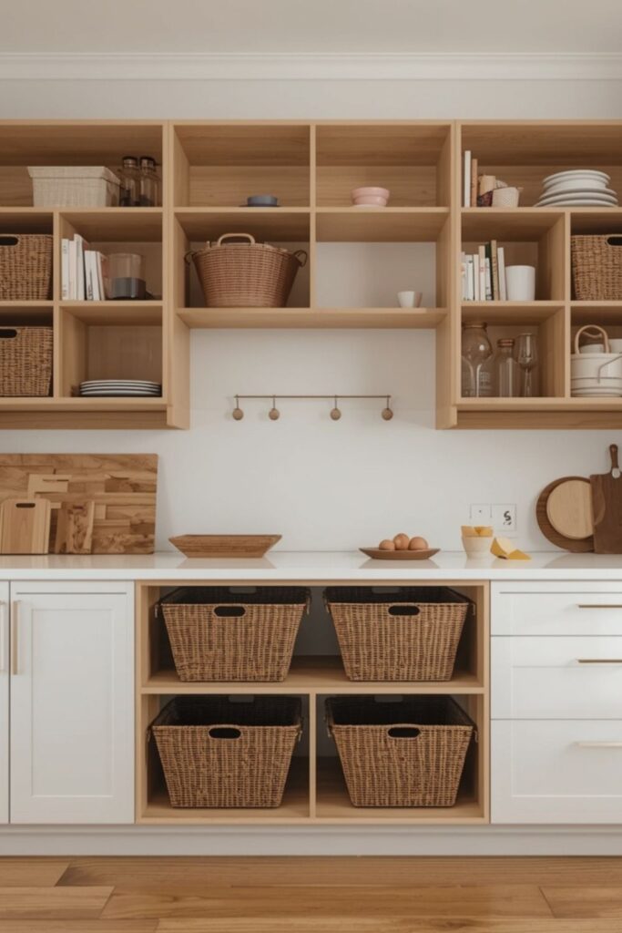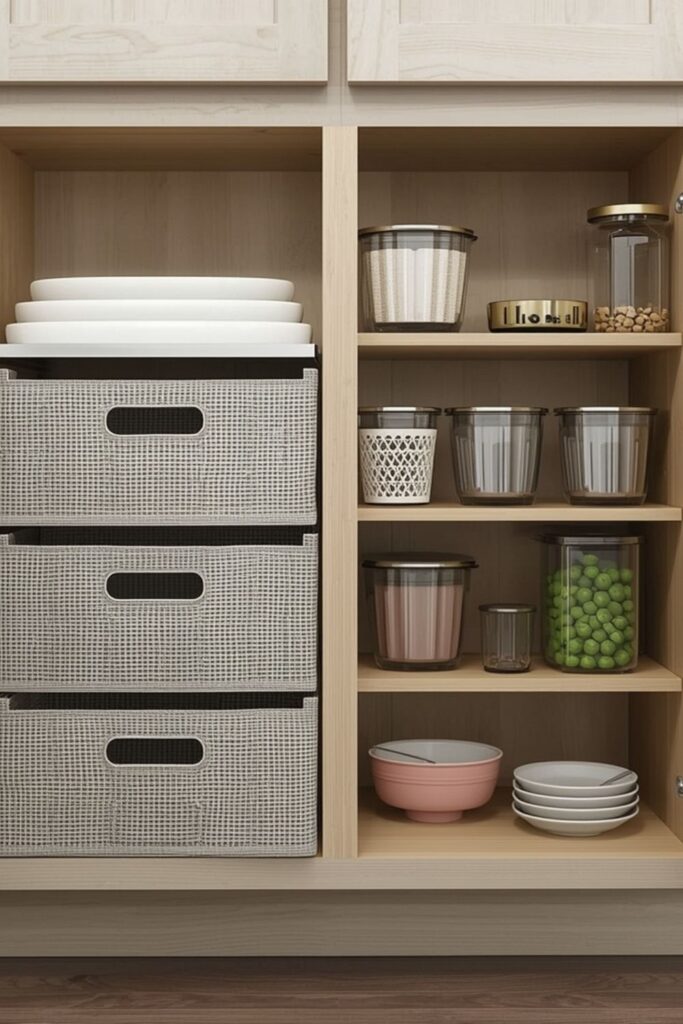 Interior cabinet accessories such as dividers, pull-out racks, and basket systems improve organization without changing cabinet exteriors. These additions help keep items separated and accessible.