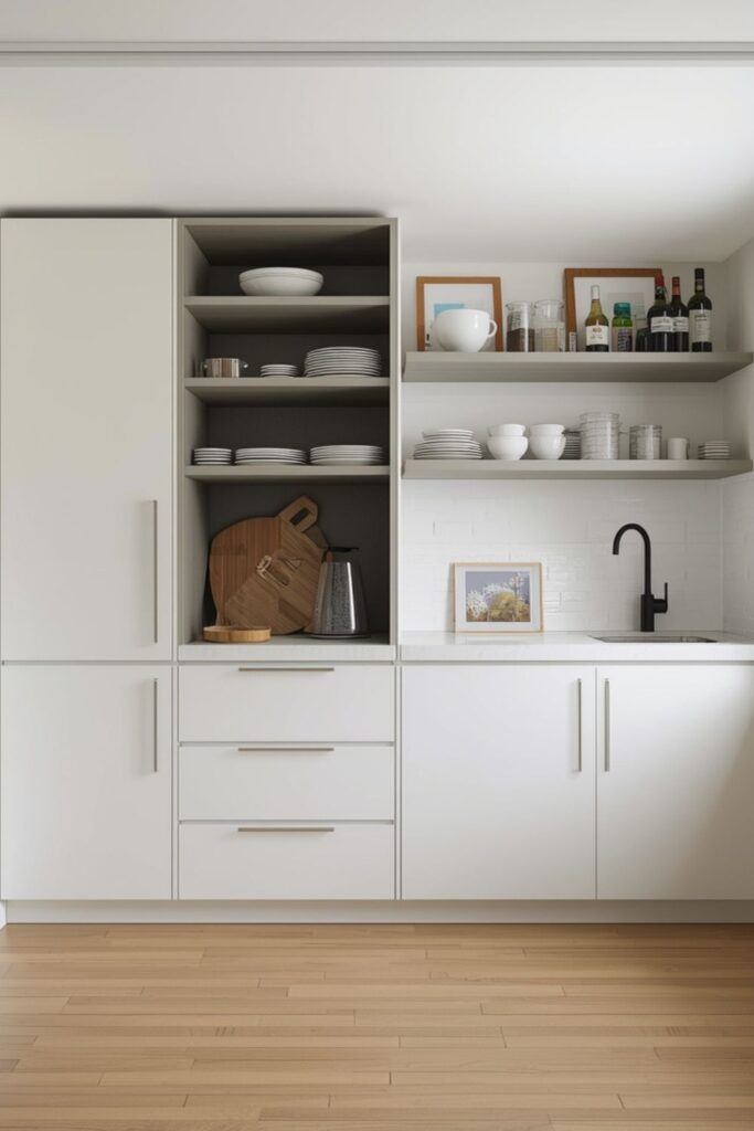 This idea fits well within 10 Smart Storage Solutions for Modern Kitchens, especially in compact homes where adjacent spaces must work together. It adds storage without changing the kitchen’s footprint.