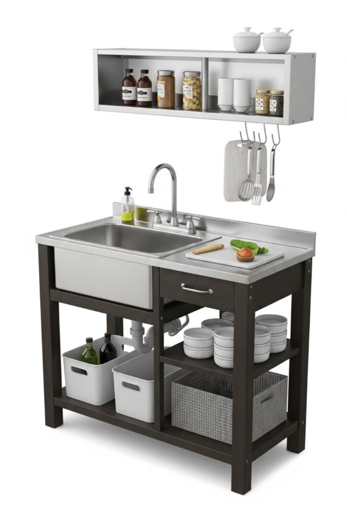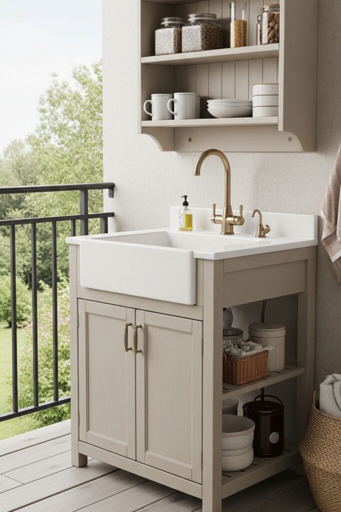 Despite their size, compact sinks can include storage cabinets below. This combination maximizes efficiency without cluttering the area. It’s a smart solution seen often on 10 stylish outdoor kitchen sink ideas Pinterest boards.