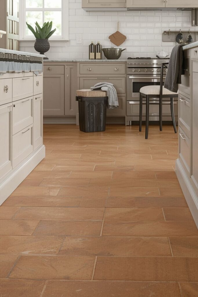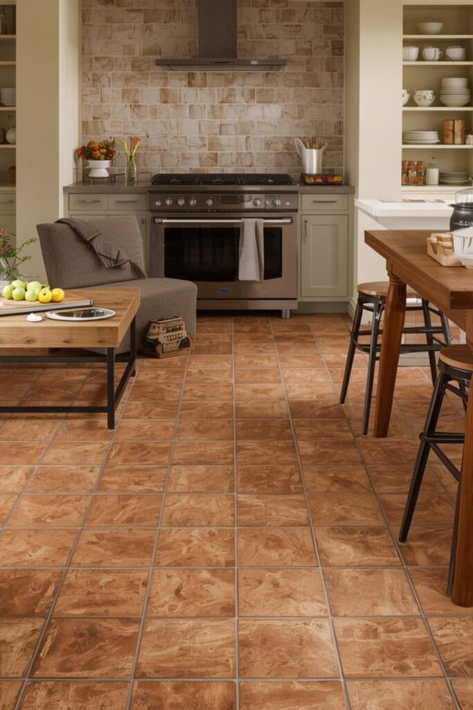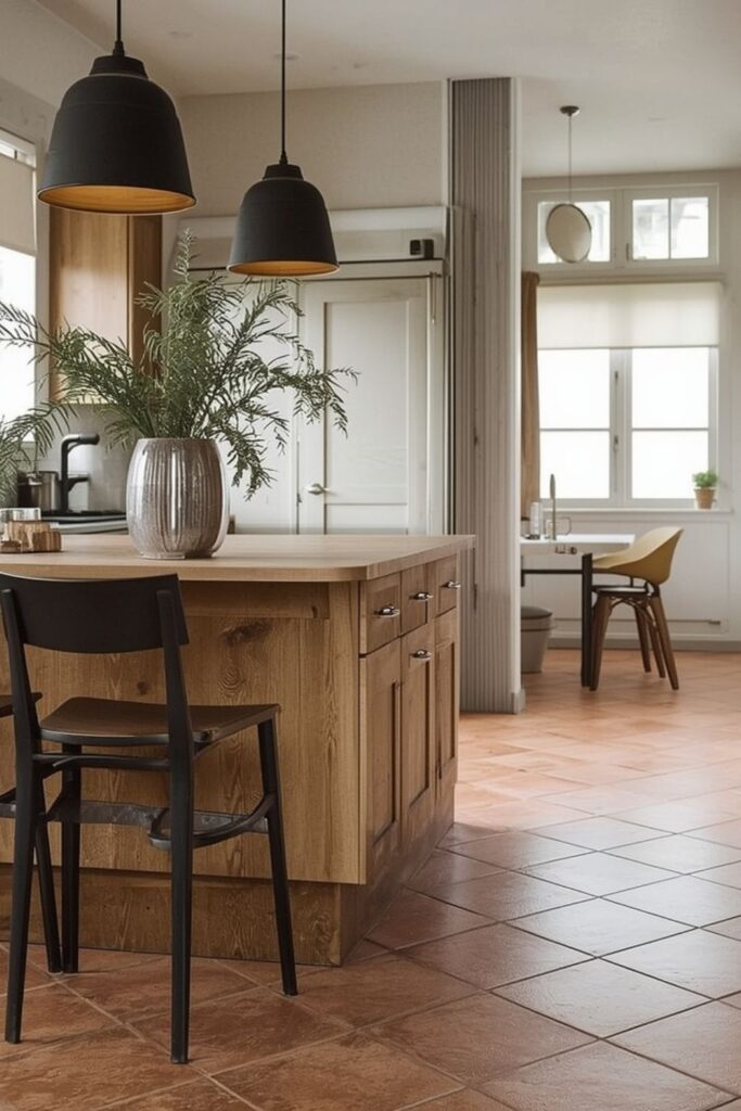 Bringing natural warmth into the kitchen with terracotta flooring works especially well in homes with neutral walls and wooden cabinets. The floor becomes a subtle focal point without overpowering the space. This balance makes terracotta a reliable choice for everyday kitchens that need to feel both practical and inviting.