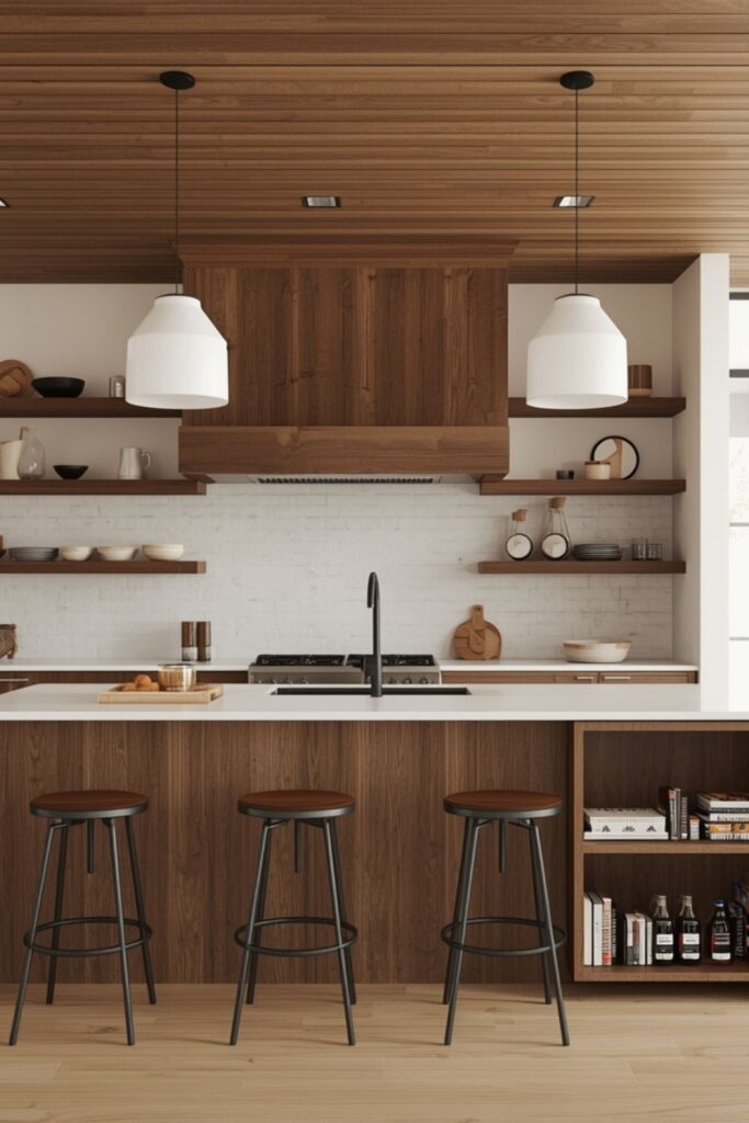 Wood is no longer just an accent. In kitchen trends 2026, it often becomes the main material across cabinetry, islands, and shelving. Designers are embracing wood-drenched kitchens that blur the line between kitchen and living room.