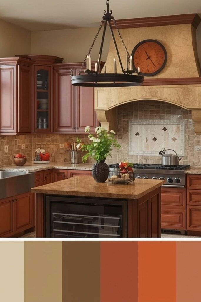 One of the defining elements of Tuscan kitchen design is its earthy color scheme. Shades like terracotta, beige, ochre, and warm browns dominate walls and cabinetry.