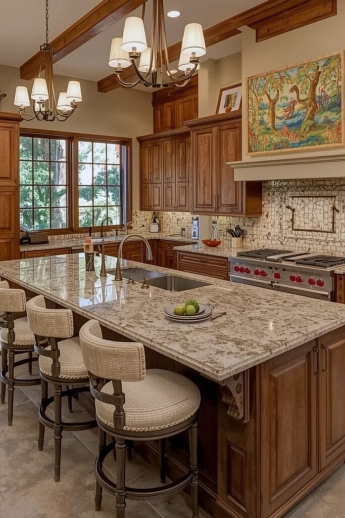 A generous kitchen island serves as the heart of many Tuscan kitchens. Often made from wood or stone, these islands are functional and social.