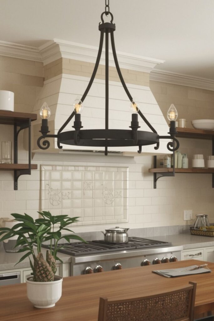 Wrought iron is frequently used in Tuscan kitchen design for light fixtures, cabinet handles, and shelving brackets. It introduces contrast and reinforces the old-world aesthetic.