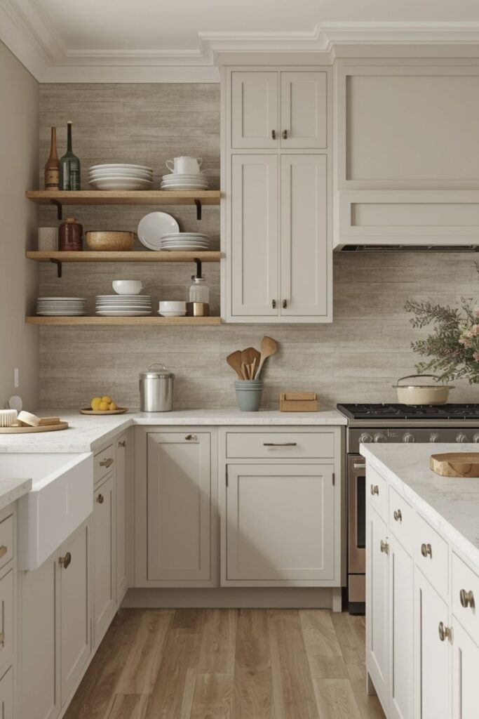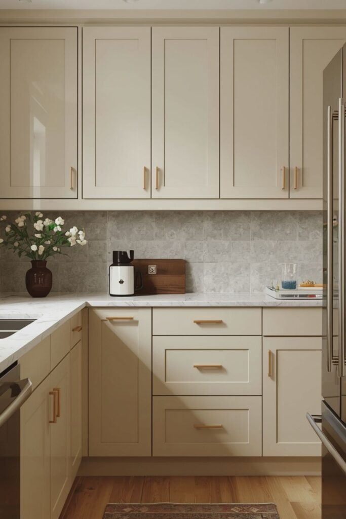 Using neutral tones across cabinets, walls, and backsplashes allows Chic Small Kitchen Ideas to feel cohesive rather than crowded. You can layer texture through finishes like matte cabinets or subtle stone patterns to avoid the space feeling flat or boring.