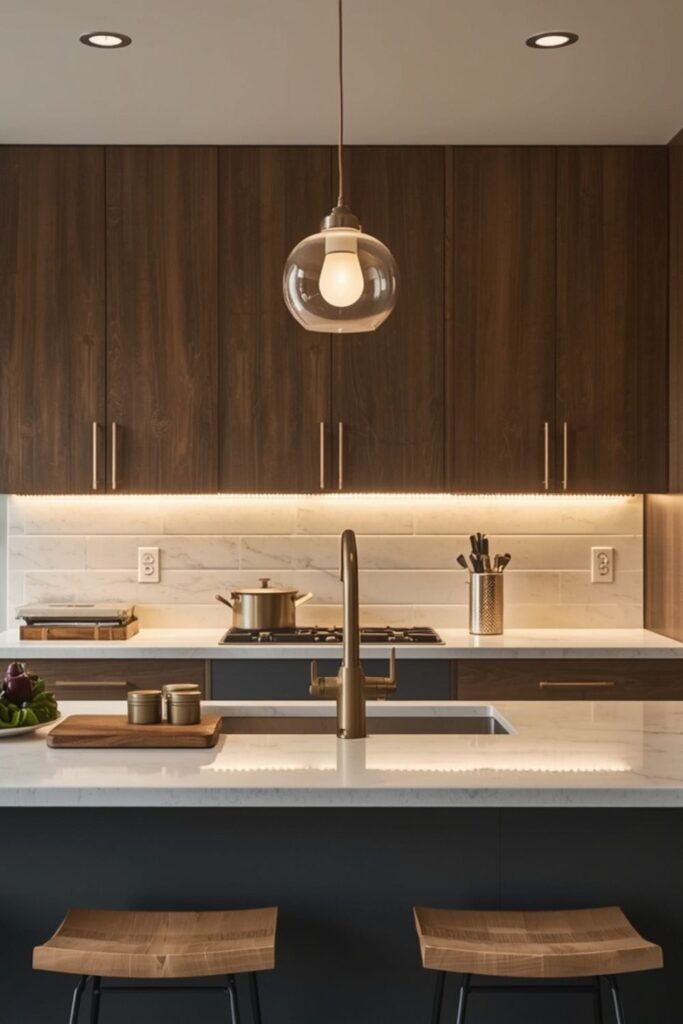 Choosing warm white lighting instead of harsh cool tones adds softness and elegance. Thoughtful lighting placement can highlight finishes and make even a compact kitchen feel layered and intentional. Warm lighting tones are especially effective for adding a luxurious feel. They soften the space, enhance finishes, and make the kitchen feel welcoming rather than harsh or clinical.