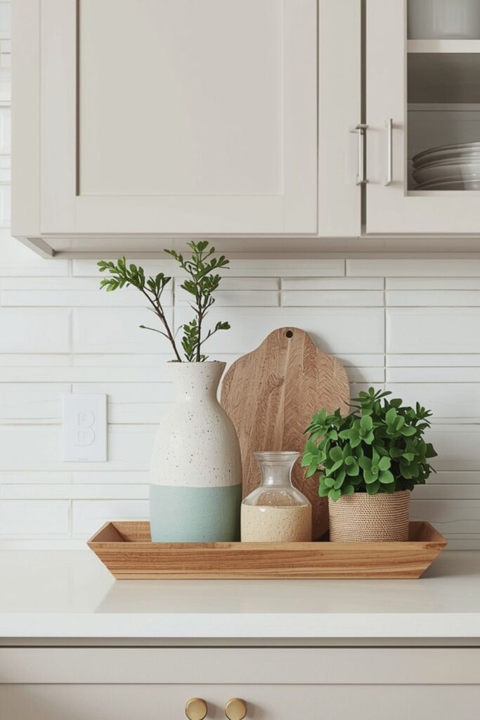 A chic kitchen doesn’t rely on decoration overload. A few well-chosen elements like a ceramic vase, a wooden tray, or a small plant can add personality without cluttering surfaces.