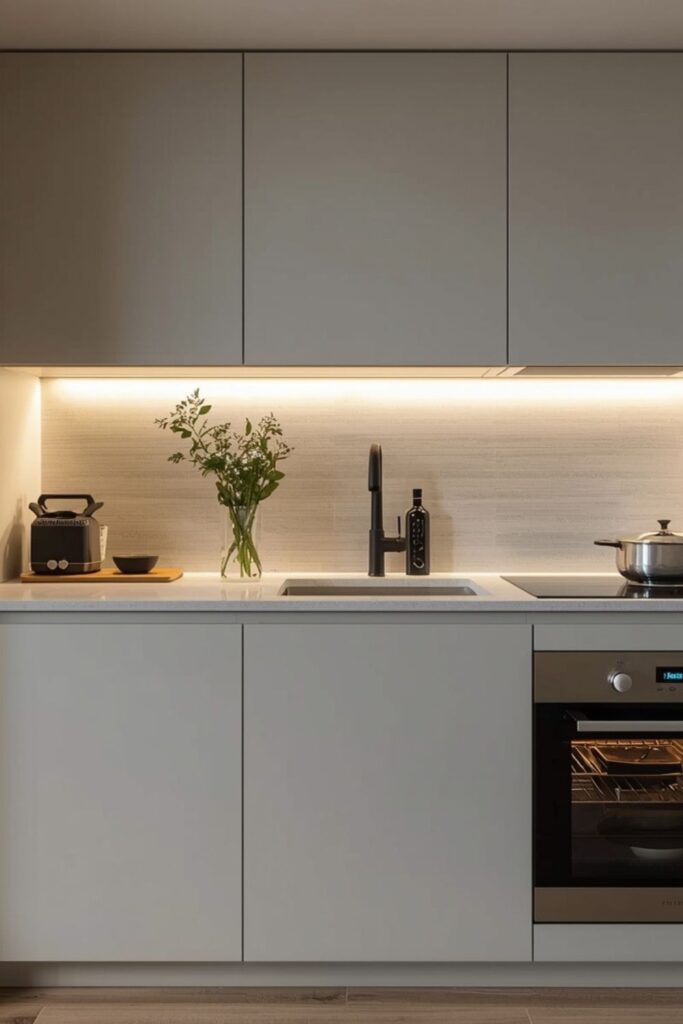 Good lighting is essential in compact kitchens. Natural light should be maximized wherever possible, while artificial lighting should feel soft and evenly distributed. Under-cabinet lighting helps work surfaces without adding glare.