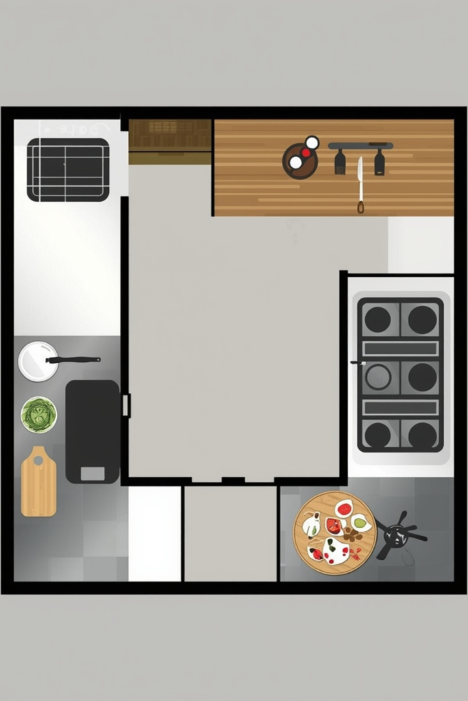 A compact U-shaped layout creates clear boundaries for cooking, washing, and preparation. Japanese kitchen layout ideas often use this structure in slightly larger spaces where functionality takes priority.