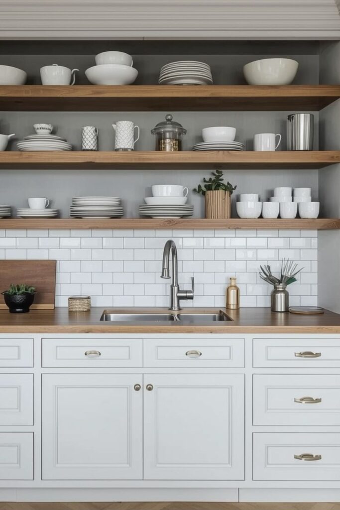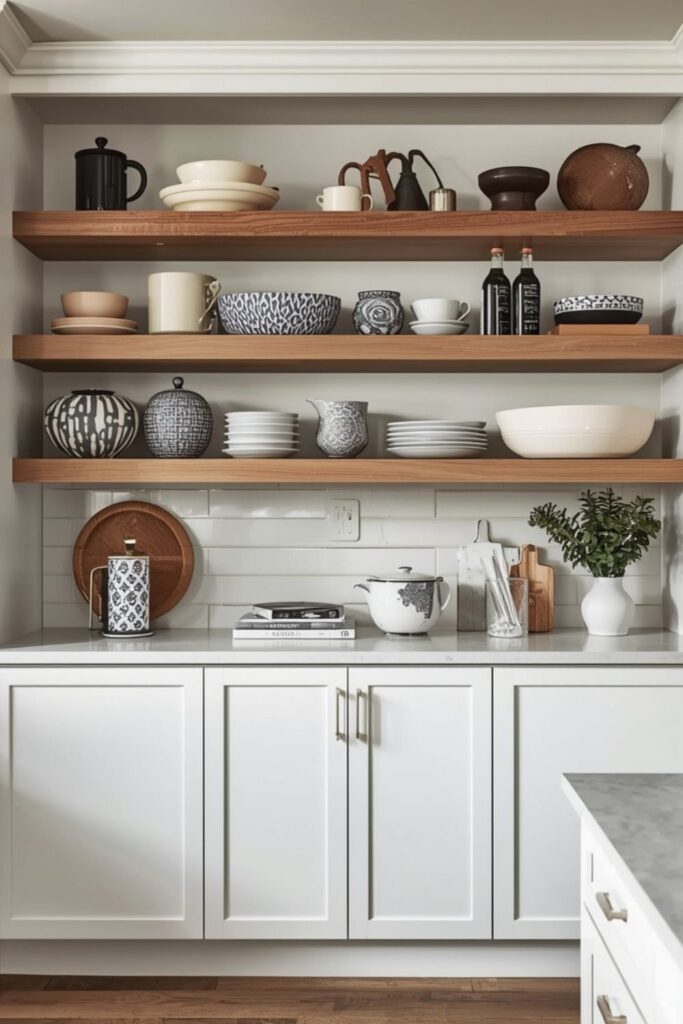 8 open shelf styling Ideas for Calm Kitchen Spaces