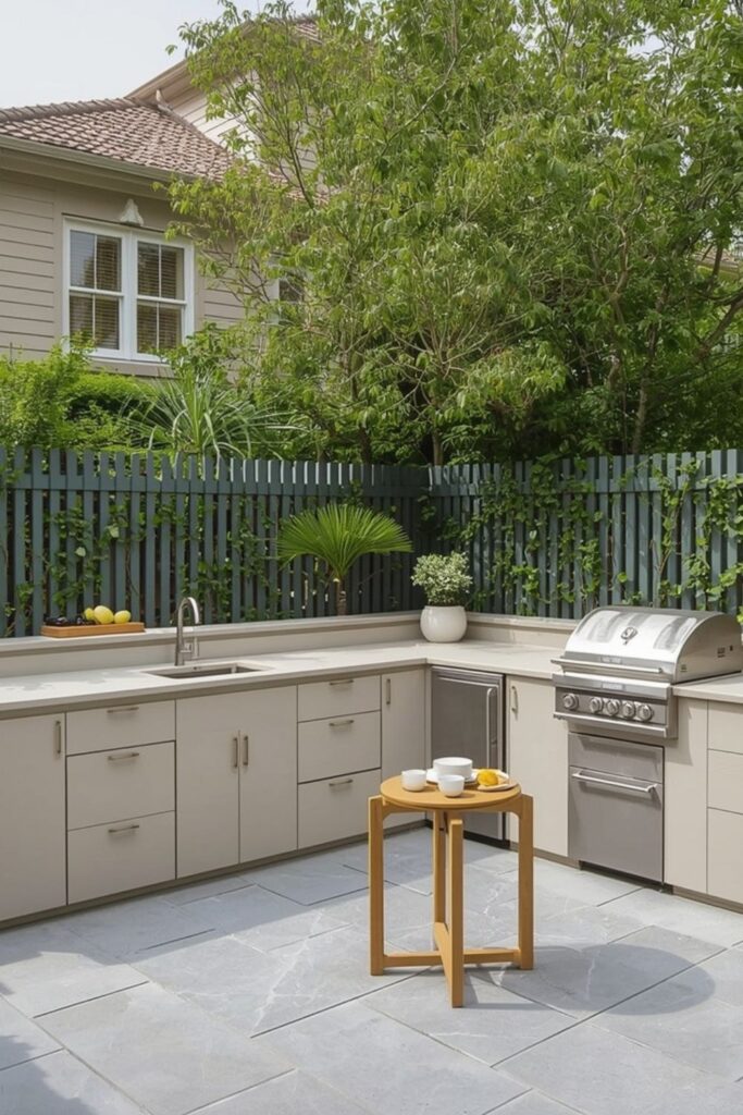 The most successful Space-Saving Outdoor Kitchen Layouts often include only the essentials. A prep surface, a grill or cooktop, and minimal storage are usually enough for everyday use.