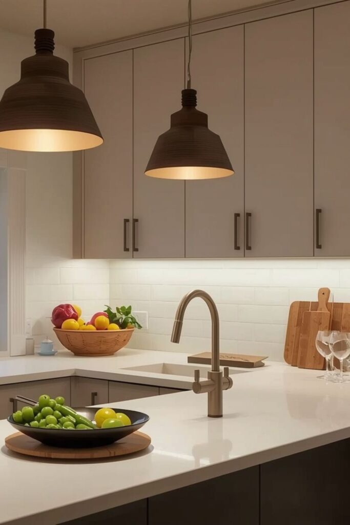 Lighting is becoming a design feature rather than just a necessity. Pendant lights, under-cabinet LED strips, and warm lighting tones add depth to small kitchens. Proper lighting eliminates dark corners and improves functionality.